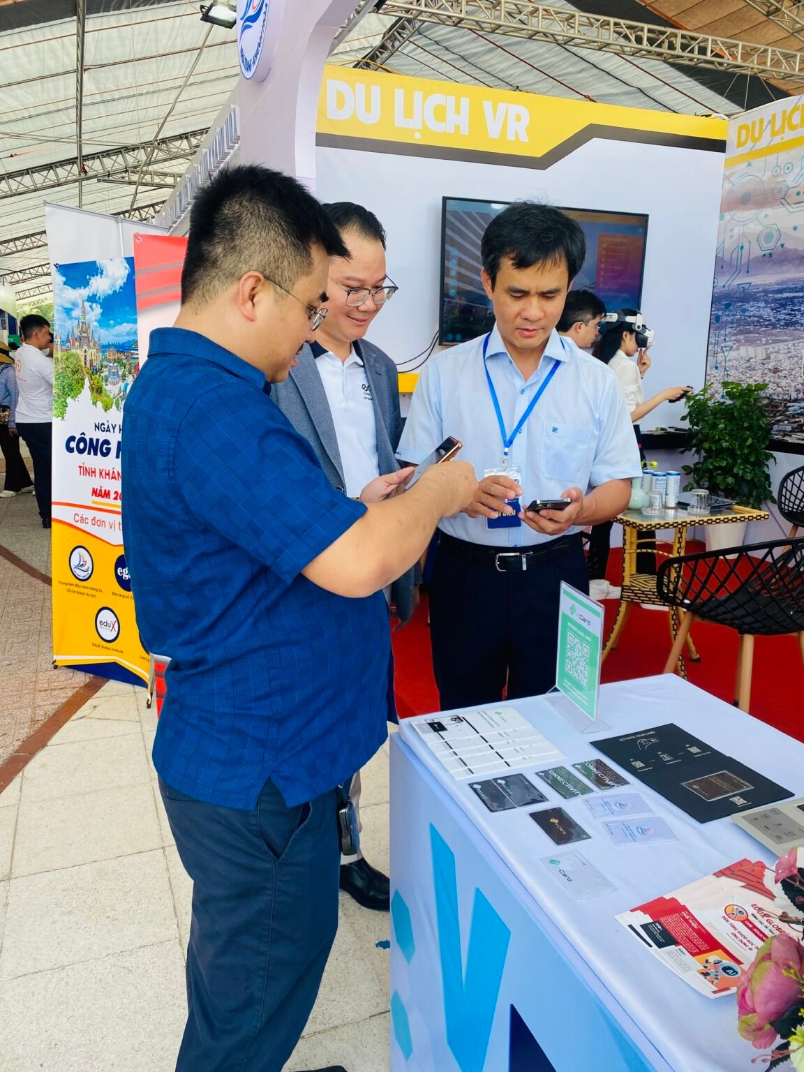 Một trong những sản phẩm thu hút sự quan tâm lớn nhất tại gian hàng của EduX Global chính là Namecard thông minh. Với thiết kế trực quan và tính năng tiện lợi, sản phẩm này đã nhận được nhiều lời khen ngợi từ khách tham quan, đặc biệt là sự quan tâm tìm hiểu từ lãnh đạo tỉnh Khánh Hòa.